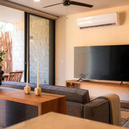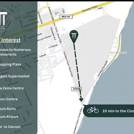 Tulum National Park ve Super Chedraui'a arabayla birkaç dakikada ulaşılabilir. Daire, Pirámide del Pensamiento Positivo'a 19 dakikalık yürüme mesafesinde bulunmaktadır. Tatlıcı Buena Estrella Herados Artesanales, daireden yaklaşık 400 metre mesafede yer almaktadır.